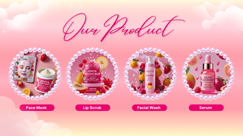 Dengan pendekatan “Juicy Outside, Joyful Inside”, JOUYA ingin setiap pengguna merasa cantik, aman, dan bahagia—tanpa harus kompromi dengan bahan-bahan berisiko. Kami bukan hanya brand skincare, tapi juga bagian dari perjalanan self-care yang menyenangkan dan penuh cinta.